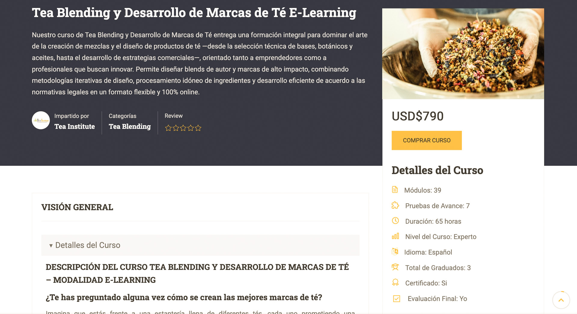 DESCRIPCIÓN DEL CURSO TEA BLENDING Y DESARROLLO DE MARCAS DE TÉ – MODALIDAD E-LEARNING